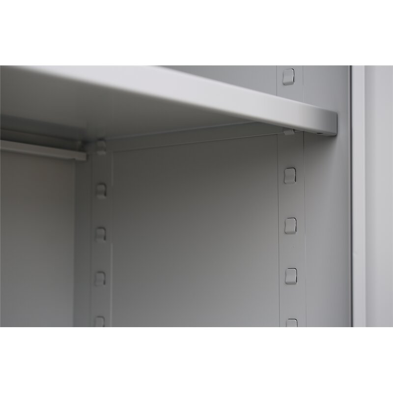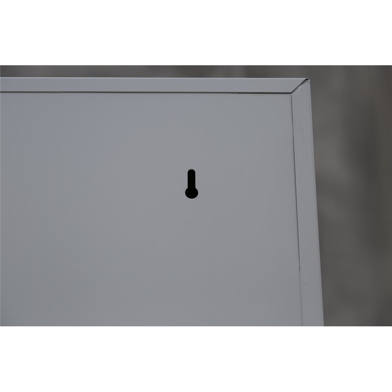 | Bemerkungen: | Korpus und Türen elektrostatisch, glatt pulverbeschichtet, Tragfähigkeit: bis 65 kg je Fachboden, Tür mit Kastenverstärkung, ein Fachboden, geräuschdämpfende Türanschlagspuffer aus Kunststoff, langlebige, pflegeleichte, verschweißte Stahlkonstruktion, mittig schließende, herausnehmbare Flügeltüren an gefederten Stiftscharnieren befestigt |