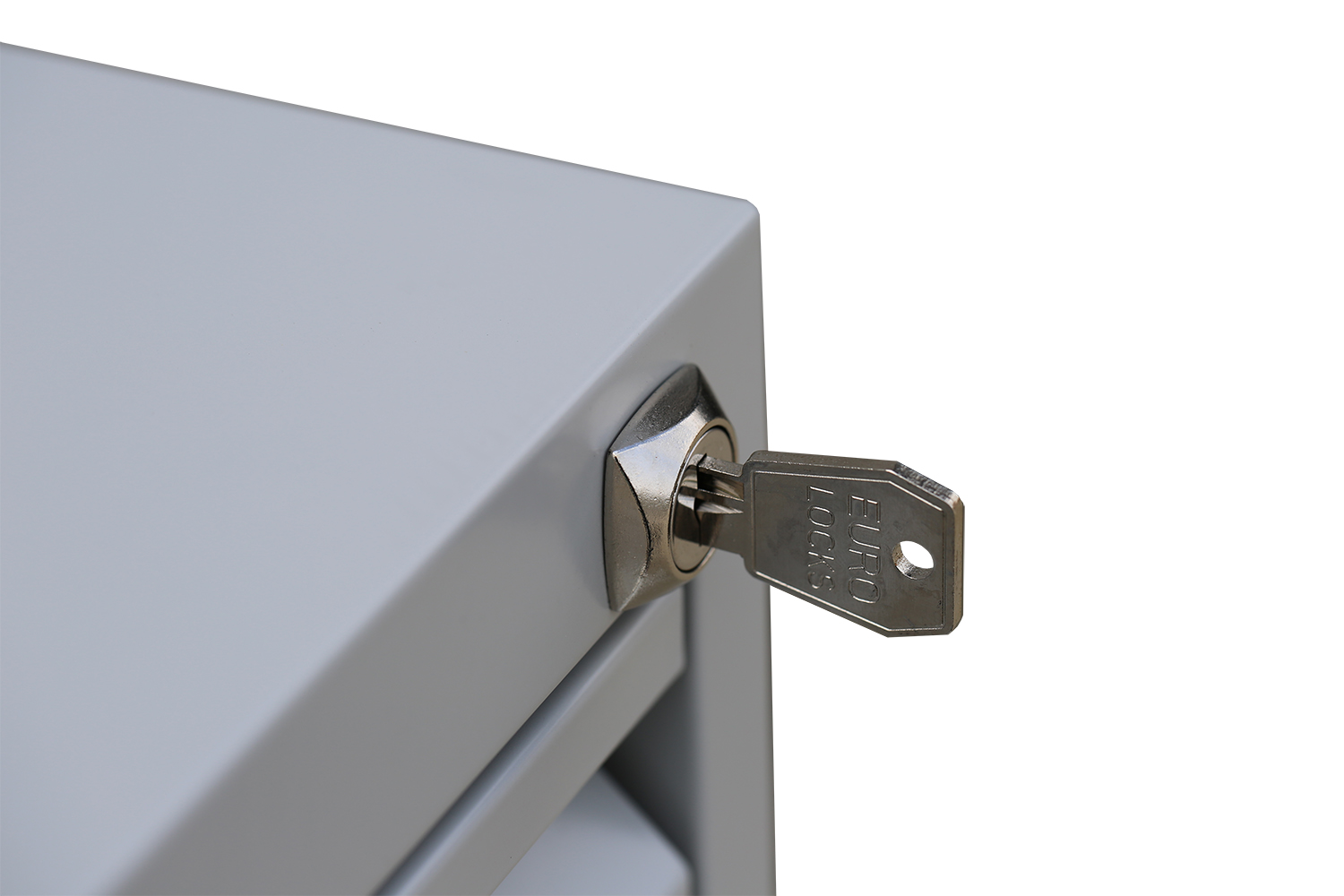 Bemerkungen: 3 einbahnige Schubladen für Hängemappen im Format DIN A4, Ausrollsicherung und Doppelauszugssperre, Durchgehende Griffleisten mit integriertem Etikettenfenster, GS-zertifiziert für geprüfte Sicherheit und Qualität , Geschlossene Schubladenwanne, Korpus und Schubladen elektrostatisch, glatt pulverbeschichtet, Lieferung: Komplett verschweißt - keine Montage erforderlich, Präzisionsteleskopführung, Schubladentiefe 550 mm, Tragkraft bis zu 25 kg je Schublade, Zentralzylinderschloss inkl. 2 Schlüssel, langlebige, pflegeleichte, verschweißte Stahlkonstruktion