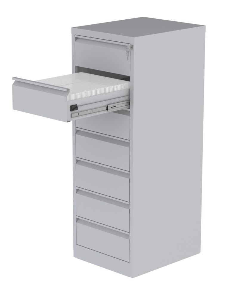 | Bemerkungen: | 7 Schubladen für je 2 Reihen Karteikarten im Format DIN A5, Schubladen mit Vollauszug, montiert auf Teleskopschienen mit Kugellagern, aus hochwertigem Qualitätsstahlblech , dank einer glatten, einheitlichen Oberfläche leicht zu reinigen, langlebig und pflegeleicht |