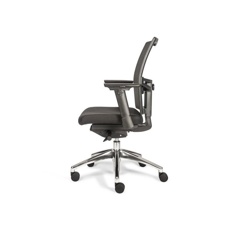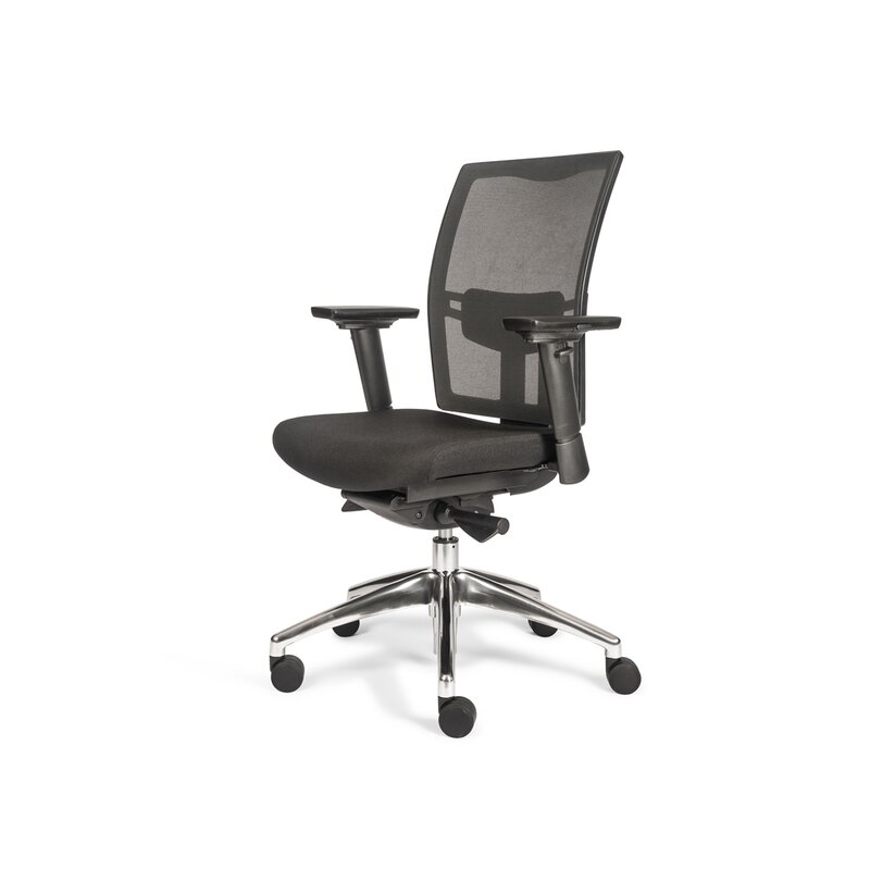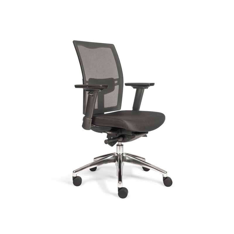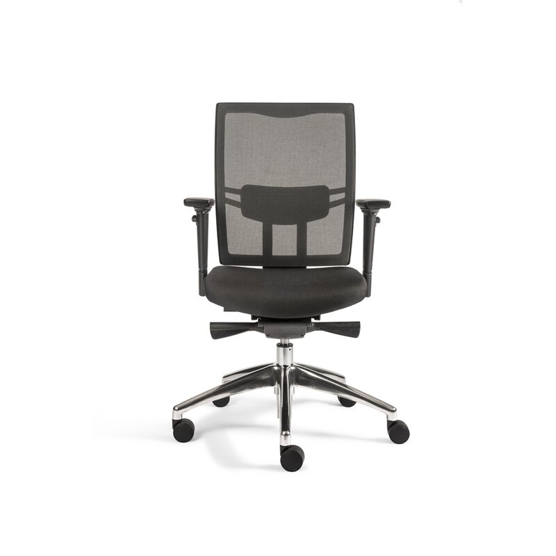 Produktinformationen "Bürodrehstuhl mit Armlehnen - Netzrücken - Lordosenstütze - Alu Fußkreuz"