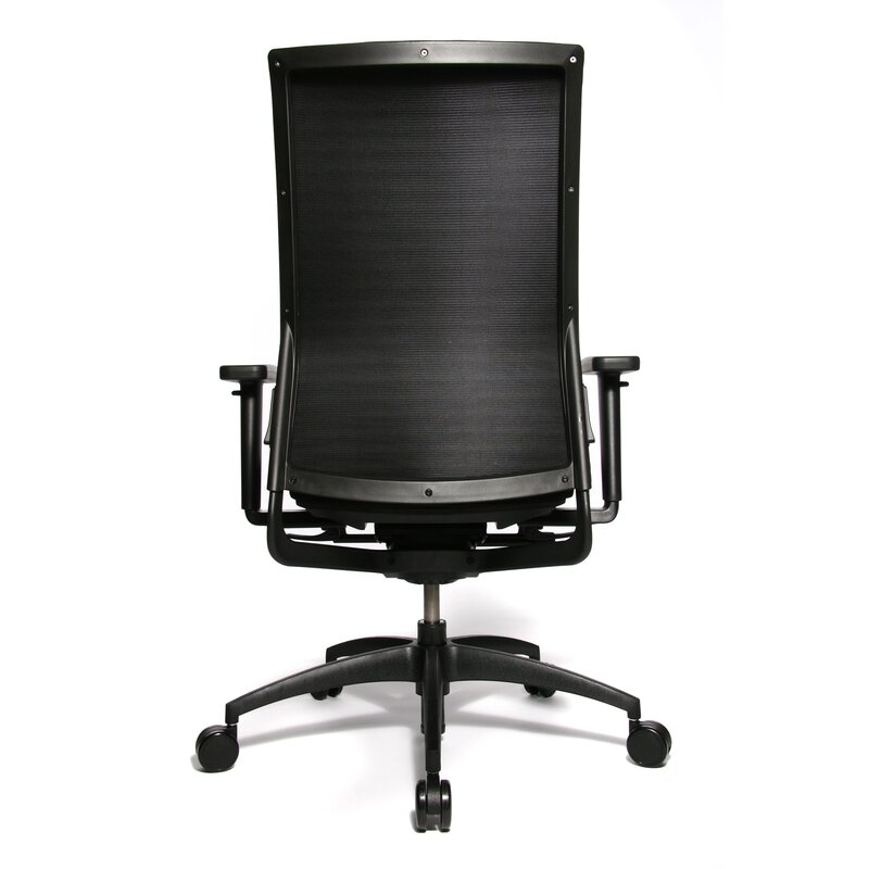 Chefsessel Comfort E 100-3 mit hoher, höhenverstellbarer, netzbespannter Rückenlehne, Muldensitz mit Sitztiefen- und Sitzneigeverstellung, 3D Dondola® Sitzgelenk, Stoffbezug in schwarz, 3D Armlehnen mit schwenkbarer Auflage, Punktsynchronmechanik, Kunststofffußkreuz mit lastabhängig gebremsten, harten Doppellaufrollen, TÜV/GS zertifiziert.