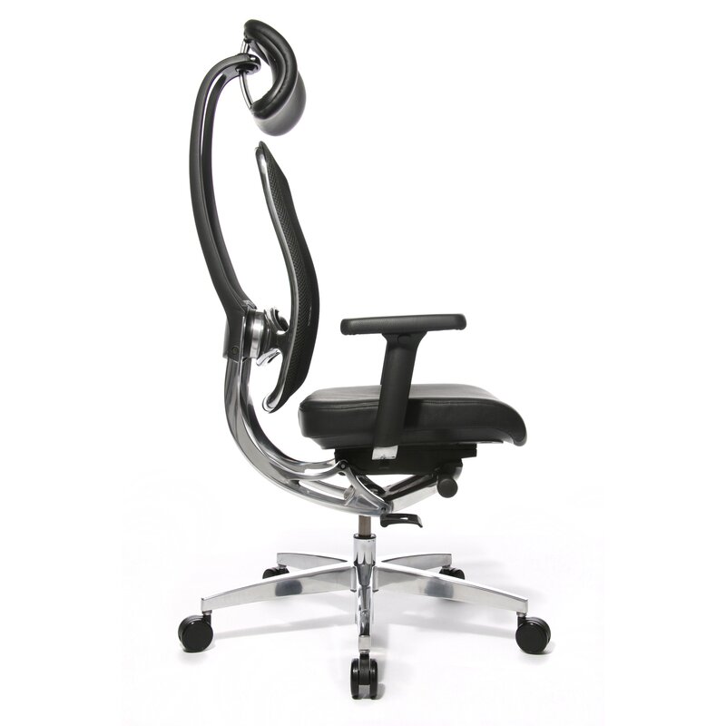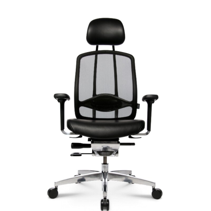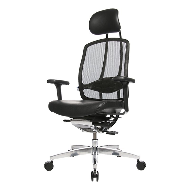 | Bemerkungen: | Aluminium-Synchro-Deluxe Mechanik mit integrierter Sitztiefen- und Sitzneigeverstellung, seitlicher Federkrafteinstellung und Mehrstufenarretierung, Atmungsaktiver Netzrücken inklusive Kopfstütze mit schwarzem Lederbezug, Design-Fußkreuz aus poliertem Aluminium, Formschöne 3D Armlehnen mit weicher Softpad Armauflage, GS-und TÜV-zertifizierte Qualität und Sicherheit, Höhenverstellbare Lordosenstütze , Komfortabler, extra dick aufgepolsterter Kontursitz mit schwarzem Lederbezug, Lastabhängig gebremste Sicherheitsdoppelrollen für Teppichböden, Rückenlehne mit integriertem, dreidimensional beweglichem Dondola Gelenk |