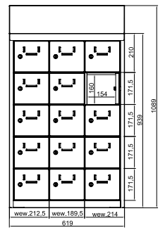 Schließfach/Kantinenschrank - 4 Abteile - 20 Fächer - hängend
