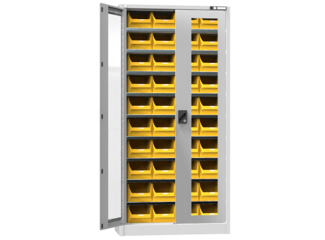 Ausgeklügelte stabile Bauart aus Stahlblech, hochwertige Lackierung und Werkstattverarbeitung unter Anwendung von modernen Automatisierungssystemen. Das ist das nächste Produkt aus der Familie der Werkstattmöbel Die Werkstattschränke sind für anspruchsvolle Bedingungen, nicht nur in Maschinenbaubetrieben, entworfen. Unsere Schränke helfen Ihnen mit der Ordnung, Übersicht und Aufbewahrung Ihres Materials. Schränke der UK-Serie mit Flügeltüren und einem größeren Öffnungswinkel als 90° stellen eine leichtere Form der Werkstattschränke dar. Sie werden vor allem für die Aufbewahrung von leichterem Material mit kleineren Abmessungen, bzw. als Aufbewahrungsort für Kunststoffboxen für Kleinteile benutzt. Bei den Varianten mit Glastüren wird gehärtetes Sicherheitsglas verwendet. Die Schränke sind mit einem Schloss mit einem Zweipunktschließsystem mit geräuschlosem Gang versehen. Die Fachböden sind verstellbar.