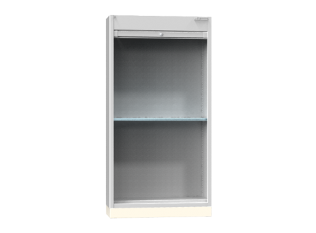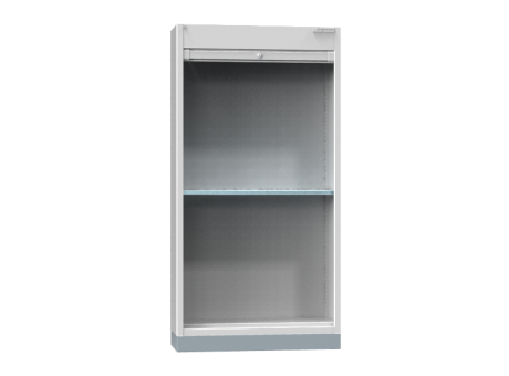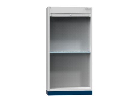 Der Sockel ist für alle Schränke mit dem Grundriss SR4 bestimmt. Der Schrank wird auf den Sockel gestellt und mithilfe der auf der oberen Fläche des Sockels angeordneten Profile fixiert. Bestandteil des Sockels sind abnehmbare Stirnseiten, nach deren Entnahme es möglich ist, unter den Schrank auf dem Sockel mit einem Hubwagen zu fahren. Kann nicht nachträglich bestellt werden.