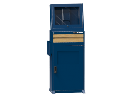 Computerschränke und Terminals sind die richtige Lösung zum Schutz der teuren IT-Ausrüstung. Computerterminals sind im oberen Bereich mit einem Bildschirmschrank mit einer verglasten klappbaren Tür und einer verstellbaren Aufnahme versehen. Dank dieser Bauart können ein Touchscreen sowie ein All-in-One-PC verwendet werden. Im unteren Bereich befindet sich eine Holzschublade für die Tastatur, eine Doppeltür und innen ein Fachboden. Die Computerschränke unterscheiden sich vom Terminal durch den unteren Schrank, der mit einer Schublade für die Tastatur und einem Auszugboden ausgestattet ist. Wir liefern die Computerschränke auch in mobiler Ausführung mit Rollen. Beide Produkte nutzen das Ein-Schlüssel-System