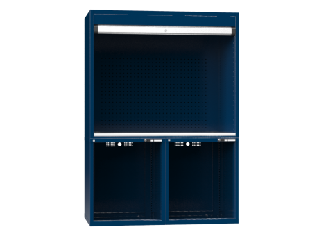 Anspruchsvolle Fertigungsprozesse erfordern die laufende Kontrolle der Arbeitsqualität. Für die Absicherung Ihrer Messgeräte und Hilfsmittel, Hardware sowie Software, Durchführung von Kontrollen sowie für die Archivierung Ihrer Prüfprotokolle, sind unsere Prüfarbeitsplätze geeignet. Der ganze Arbeitsplatz ist abschließbar. Die Seitenwände des oberen Bereichs sind mit gehärtetem Sicherheitsglas versehen, der vordere Bereich kann mit Alu-Rollladen mit Aufrollmechanismus abgeschlossen werden. Der Rollladen endet mit einem Alu-Griff mit integriertem Drehstangenschloss. Der untere Bereich ist mit Schubladen und Türen in der Größe 27 x 27D versehen. Die Arbeitsplatte ist mit Kabeltüllen versehen. Der untere Schrank ist entlüftet.