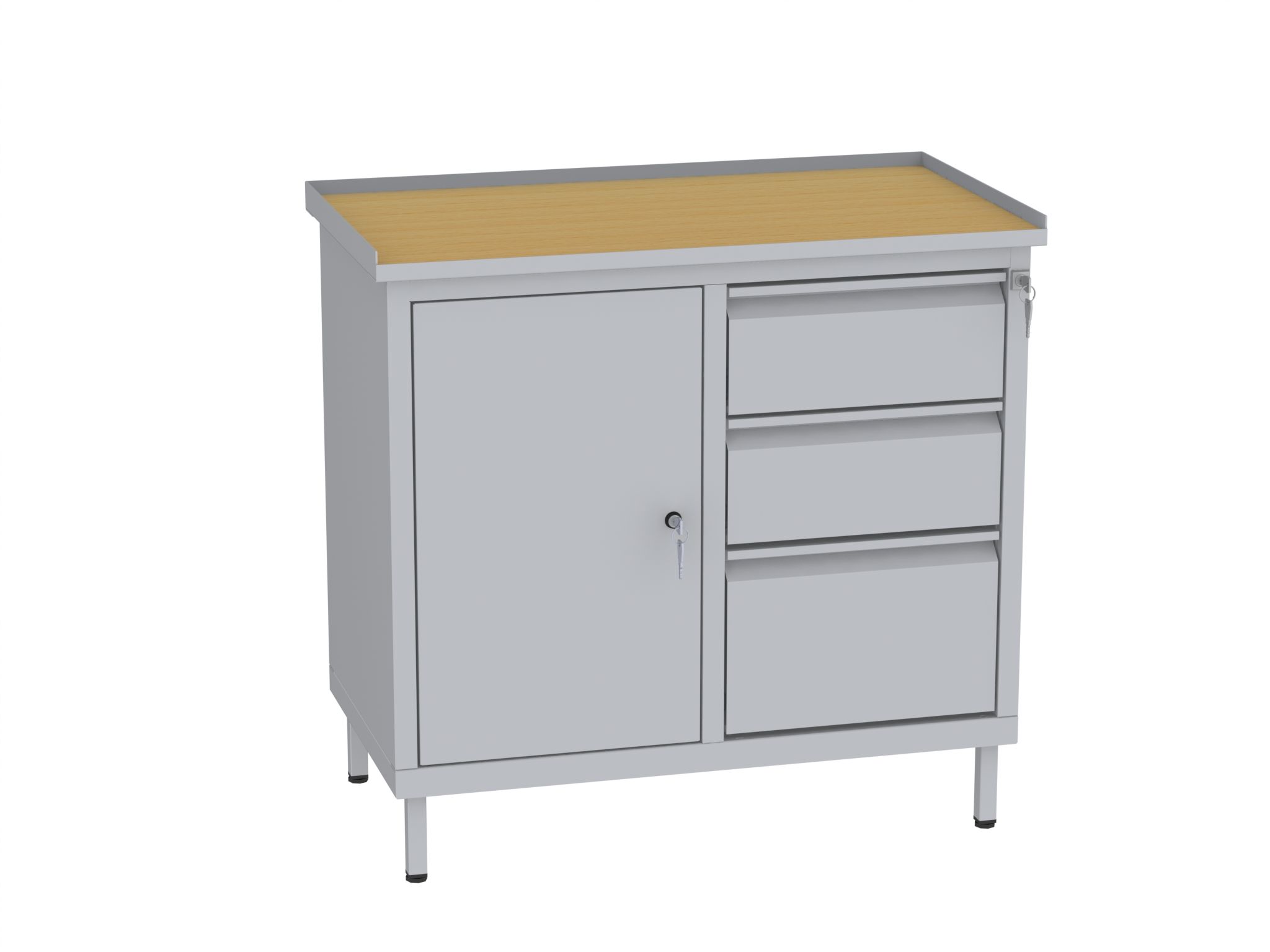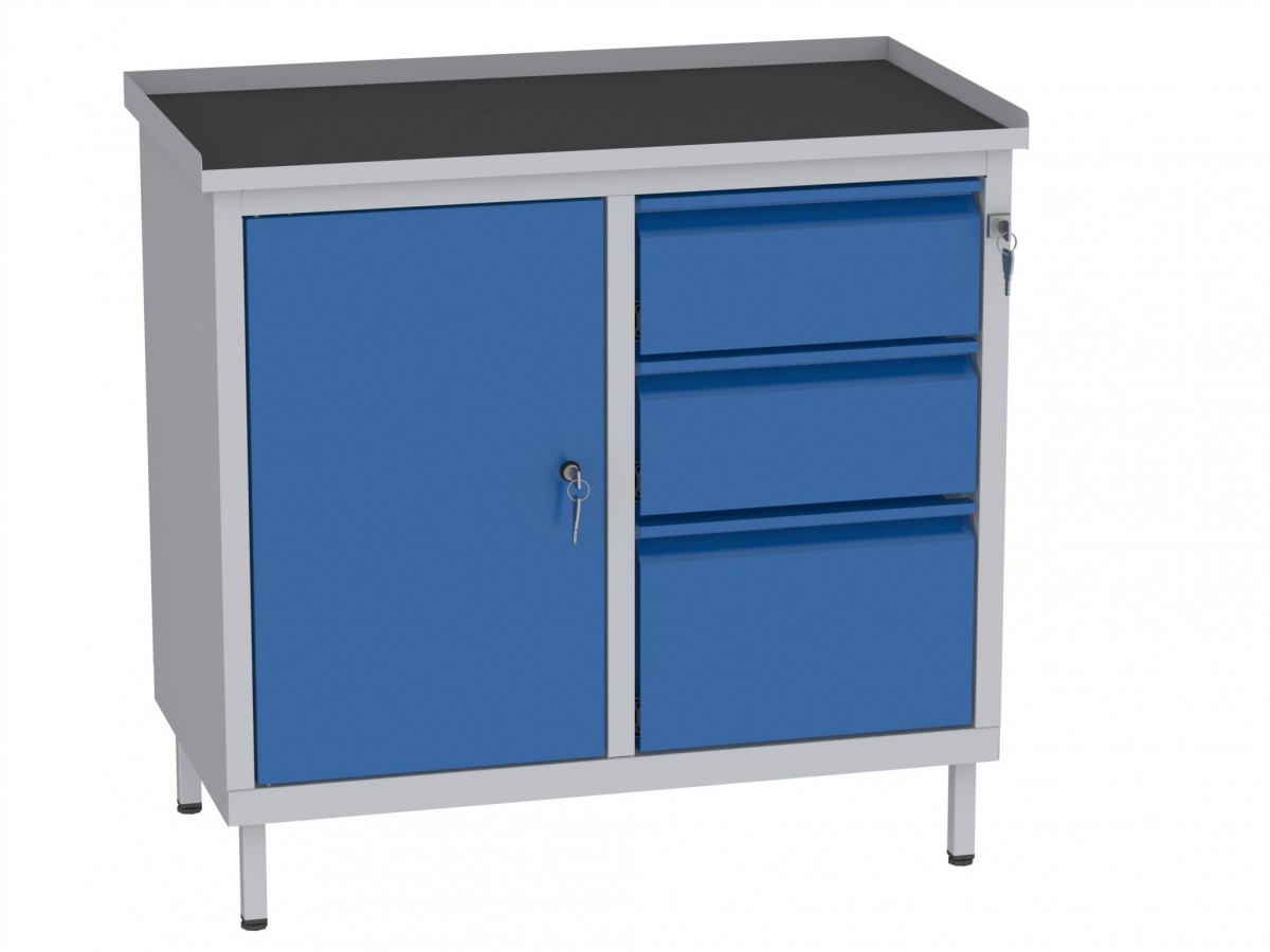 Produktinformationen "Werkstattschrank, niedrig - 2 Fächer und 1 + 2 Schubladen - 850x900x505 mm (HxBxT)"