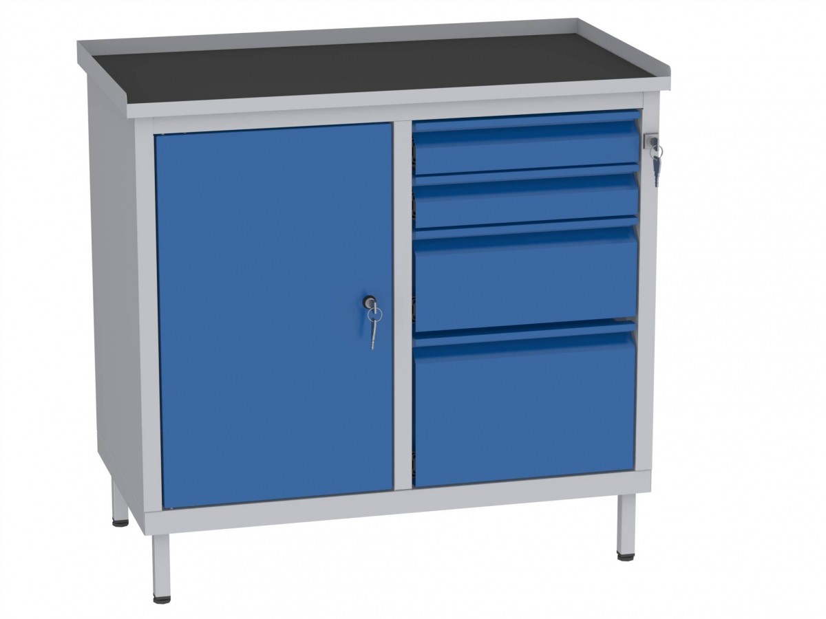Produktinformationen "Werkstattschrank, niedrig - 2 Fächer und 1 + 1 + 2 Schubladen - 850x900x505 mm (HxBxT)"