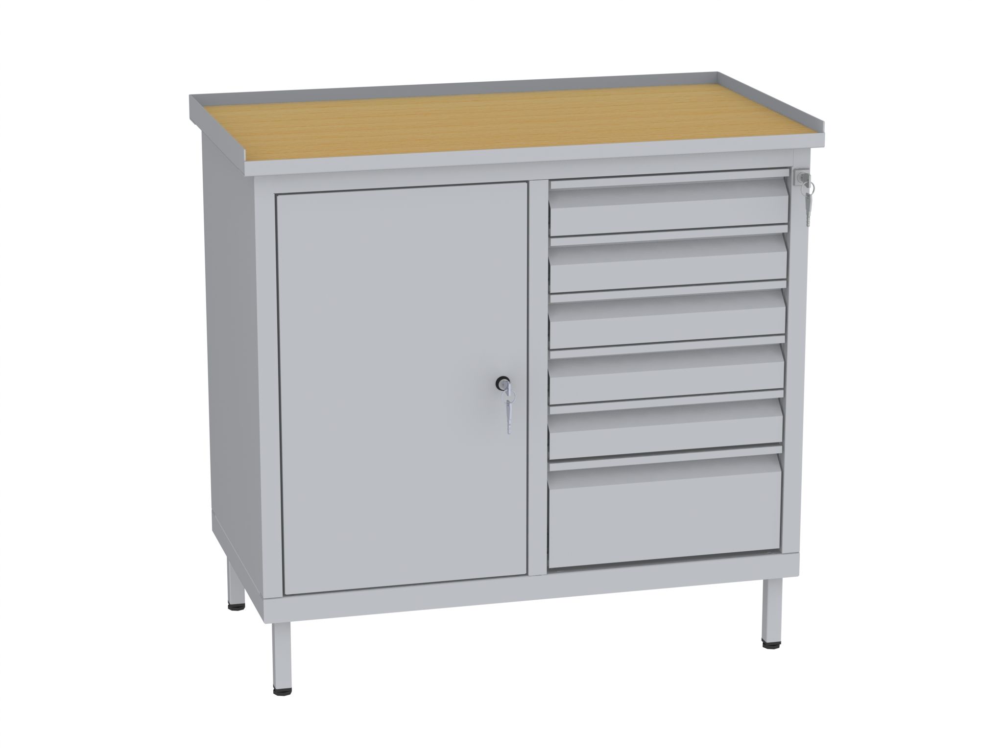 Produktinformationen "Werkstattschrank, niedrig - 2 Fächer und 1 + 5 Schubladen - 850x900x505 mm (HxBxT)"