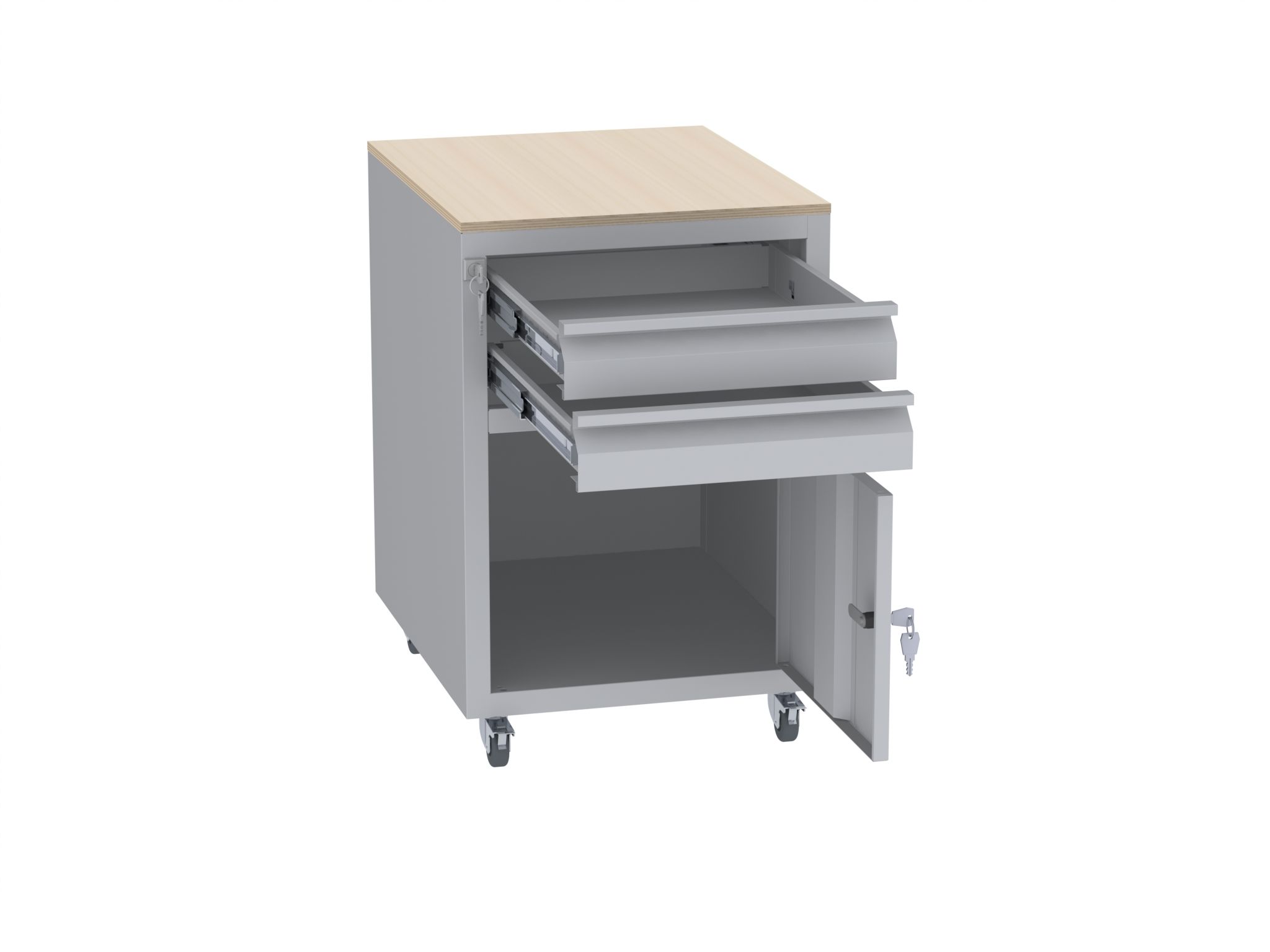 Produktinformationen "Werkstatttisch, Rollcontainer - 1 Fach + 2 Schubladen - 675x450x555 mm (HxBxT) - Typ C"