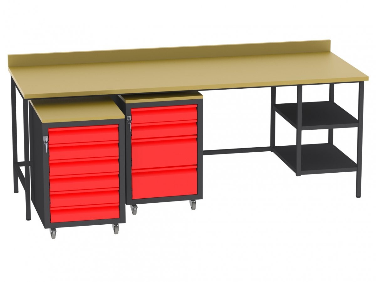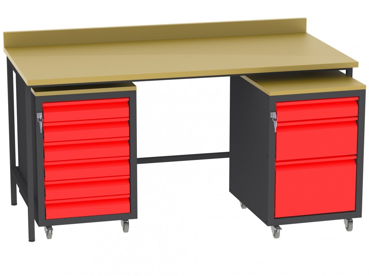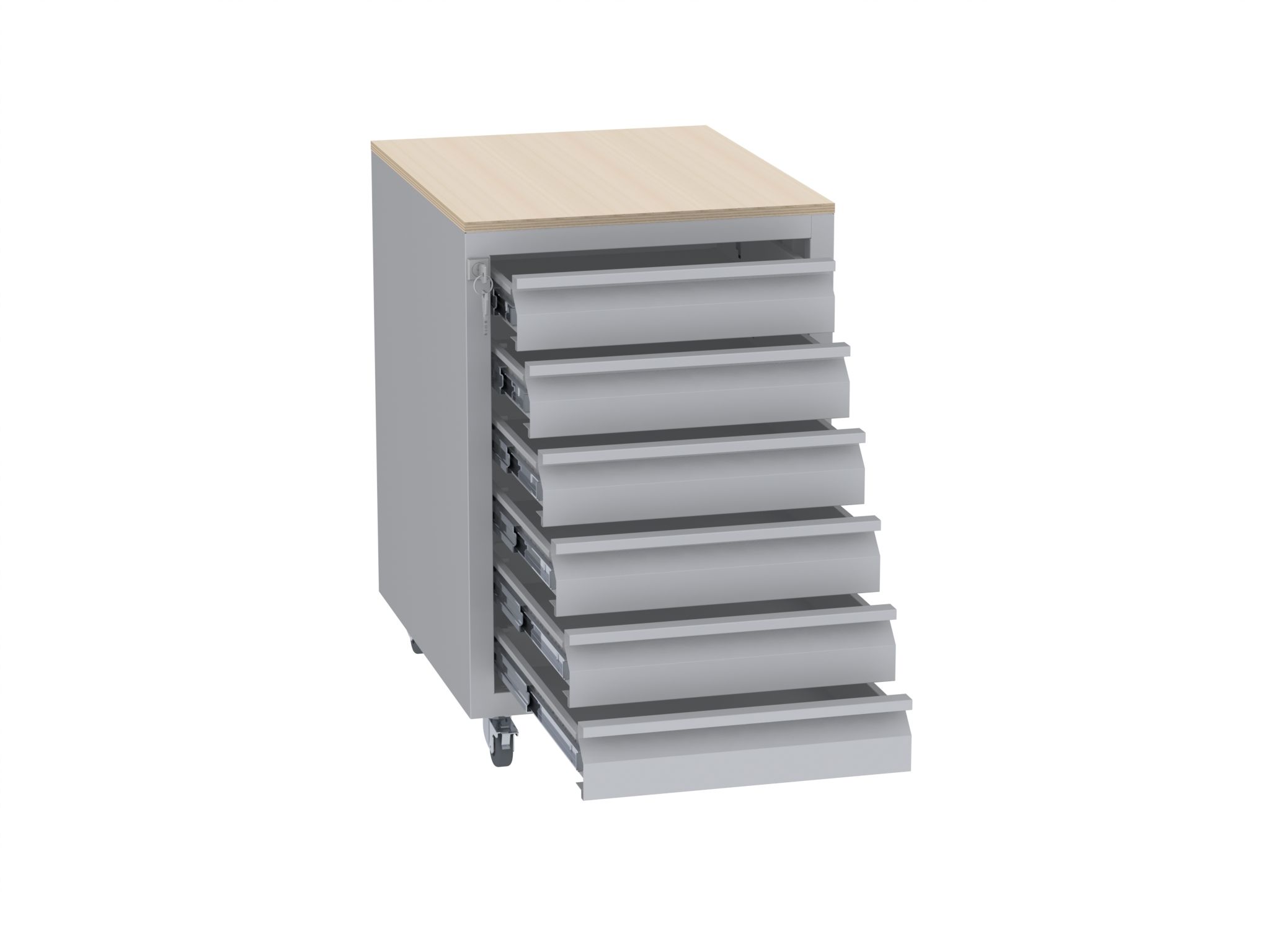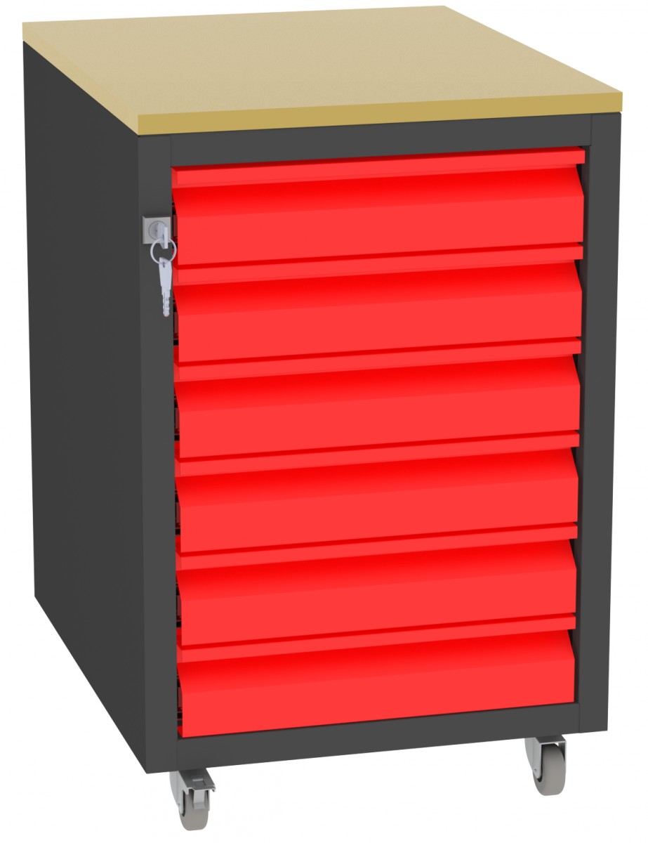 Produktinformationen "Werkstatttisch, Rollcontainer - 6 Schubladen - 675x450x555 mm (HxBxT) - Typ I"