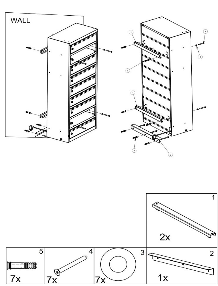- zusätzliche Befestigung an der Wand mit 12x60 mm Spreizschrauben