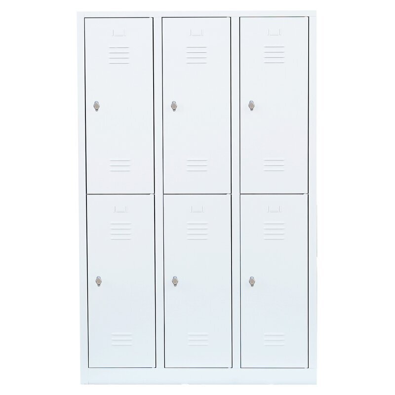 | Bemerkungen: | Korpus und Türen elektrostatisch, glatt pulverbeschichtet, Türen mit Kastenverstärkung, Lüftungsschlitzen und eingestanzten Etikettenrahmen 30x50 mm, Tür rechts angeschlagen, an gefederten Stiftscharnieren befestigt, geräuschdämpfende Türanschlagspuffer aus Kunststoff, je Fach eine Garderobenstange und 3 verschiebbare Kleiderhaken (Abteilboden glatt auskehrbar), langlebige, pflegeleichte, verschweißte Stahlkonstruktion |