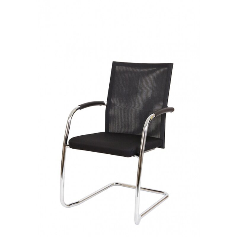 | Bemerkungen: | Gepolsterter Komfortsitz mit Sticknähten, Stoffbezug schwarz, Stapelschutz, Verchromtes Freischwingergestell, Verchromte Armlehnen mit PU Auflagen, Rückenlehne mit Netzbespannung |