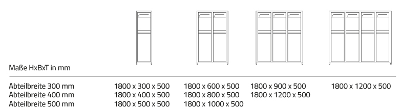 * Einsatzspind, offen – 2 Abteile zu je 300/400/500 mm Breite.