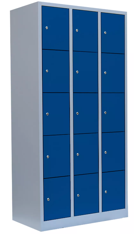 Schließfachschrank - 3 Abteile - 15 Fächer