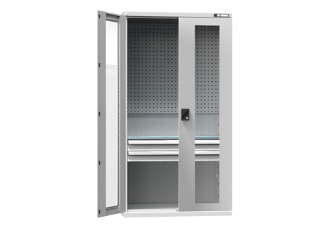 Produktinformationen "Flügeltürenschrank/ Werkzeugschrank SK1 - mit Glastür, gelochte Wände - 1000x1044x625 mm (HxBxT)-Cop"