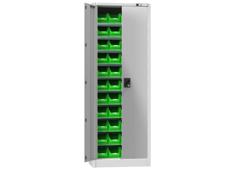 Ausgeklügelte stabile Bauart aus Stahlblech, hochwertige Lackierung und Werkstattverarbeitung unter Anwendung von modernen Automatisierungssystemen. Das ist das nächste Produkt aus der Familie der Werkstattmöbel Die Werkstattschränke sind für anspruchsvolle Bedingungen, nicht nur in Maschinenbaubetrieben, entworfen. Unsere Schränke helfen Ihnen mit der Ordnung, Übersicht und Aufbewahrung Ihres Materials. Schränke der UK-Serie mit Flügeltüren und einem größeren Öffnungswinkel als 90° stellen eine leichtere Form der Werkstattschränke dar. Sie werden vor allem für die Aufbewahrung von leichterem Material mit kleineren Abmessungen, bzw. als Aufbewahrungsort für Kunststoffboxen für Kleinteile benutzt. Bei den Varianten mit Glastüren wird gehärtetes Sicherheitsglas verwendet. Die Schränke sind mit einem Schloss mit einem Zweipunktschließsystem mit geräuschlosem Gang versehen. Die Fachböden sind verstellbar.