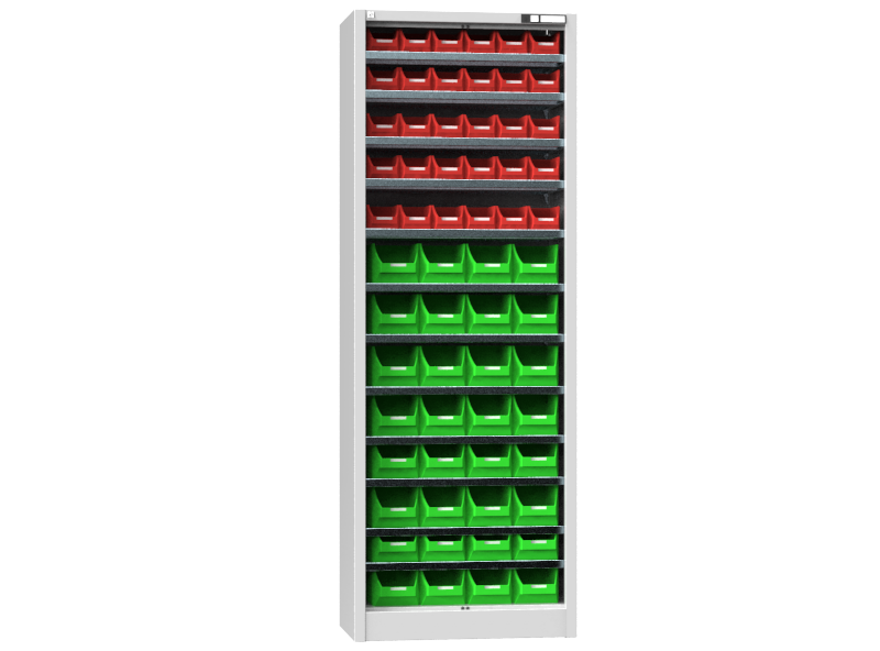 Ausgeklügelte stabile Bauart aus Stahlblech, hochwertige Lackierung und Werkstattverarbeitung unter Anwendung von modernen Automatisierungssystemen. Das ist das nächste Produkt aus der Familie der Werkstattmöbel Die Werkstattschränke sind für anspruchsvolle Bedingungen, nicht nur in Maschinenbaubetrieben, entworfen. Unsere Schränke helfen Ihnen mit der Ordnung, Übersicht und Aufbewahrung Ihres Materials. Schränke der UK-Serie mit Flügeltüren und einem größeren Öffnungswinkel als 90° stellen eine leichtere Form der Werkstattschränke dar. Sie werden vor allem für die Aufbewahrung von leichterem Material mit kleineren Abmessungen, bzw. als Aufbewahrungsort für Kunststoffboxen für Kleinteile benutzt. Bei den Varianten mit Glastüren wird gehärtetes Sicherheitsglas verwendet. Die Schränke sind mit einem Schloss mit einem Zweipunktschließsystem mit geräuschlosem Gang versehen. Die Fachböden sind verstellbar.