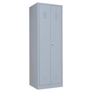 Lüllmann Mehrzweckspind mit 2 Abteilen, besonders praktisch durch die Kombination von Fachböden auf der einen mit einer Kleiderstange und Kleiderhaken auf der anderen Seite. Optimal geeignet für Umkleiden, Sozial- und Pausenräume jeder Branche, in Industrie und Handwerk, Werkstätten, im Einzelhandel, in Wohnheimen, Fitnessstudios, Schulen, Sportstudios, Lager- und Logistikbetrieben.