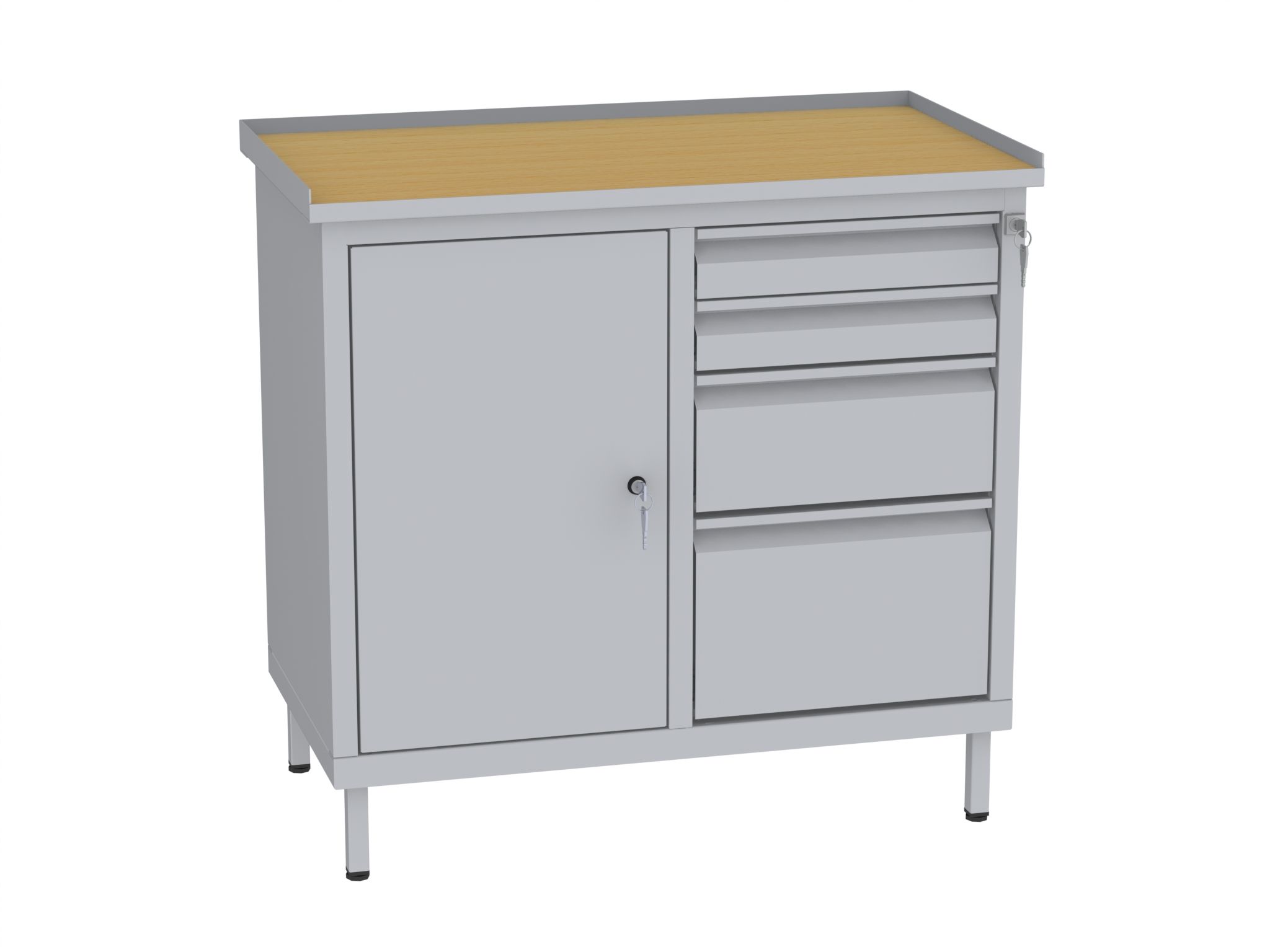 Produktinformationen "Werkstattschrank, niedrig - 2 Fächer und 1 + 1 + 2 Schubladen - 850x900x505 mm (HxBxT)"