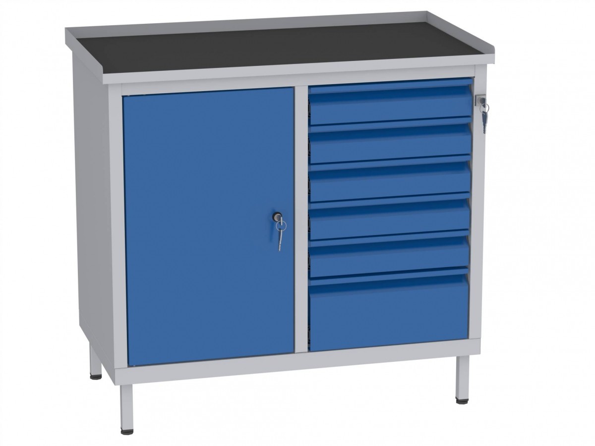 Produktinformationen "Werkstattschrank, niedrig - 2 Fächer und 1 + 5 Schubladen - 850x900x505 mm (HxBxT)"