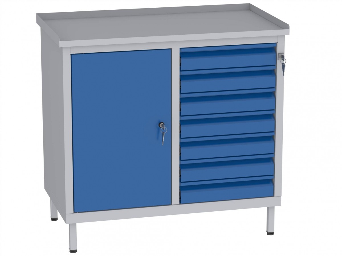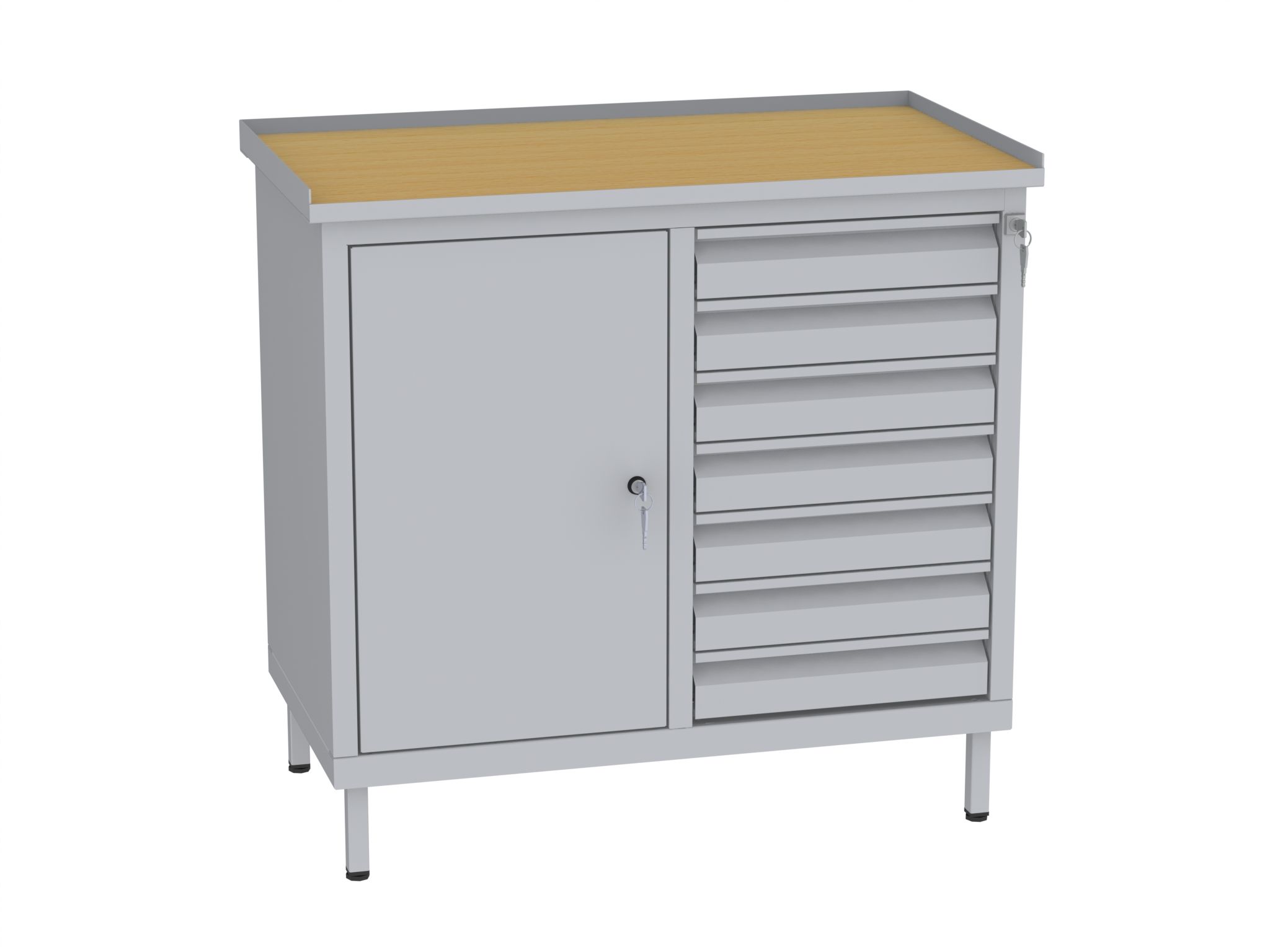 Produktinformationen "Werkstattschrank, niedrig - 2 Fächer und 7 Schubalden - 850x900x505 mm (HxBxT)"