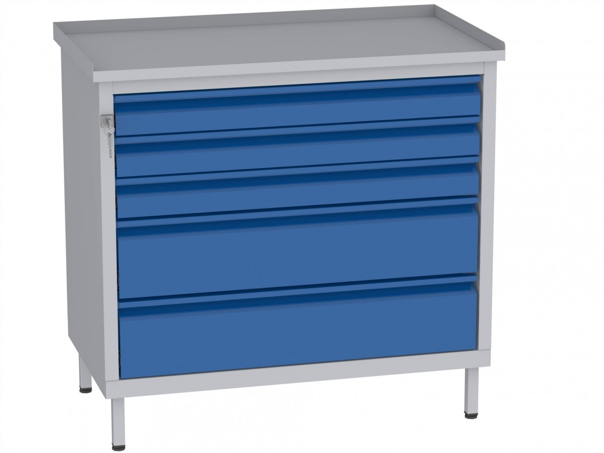 Produktinformationen "Werkstattschrank, niedrig - 2 + 3 Schubladen - 850x900x505 mm (HxBxT)"