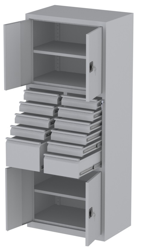 Produktinformationen "Werkstattschrank - 2 Fächer und 1 + 9 + 1 Schubladen - 1950x1000x500 mm (HxBxT)"