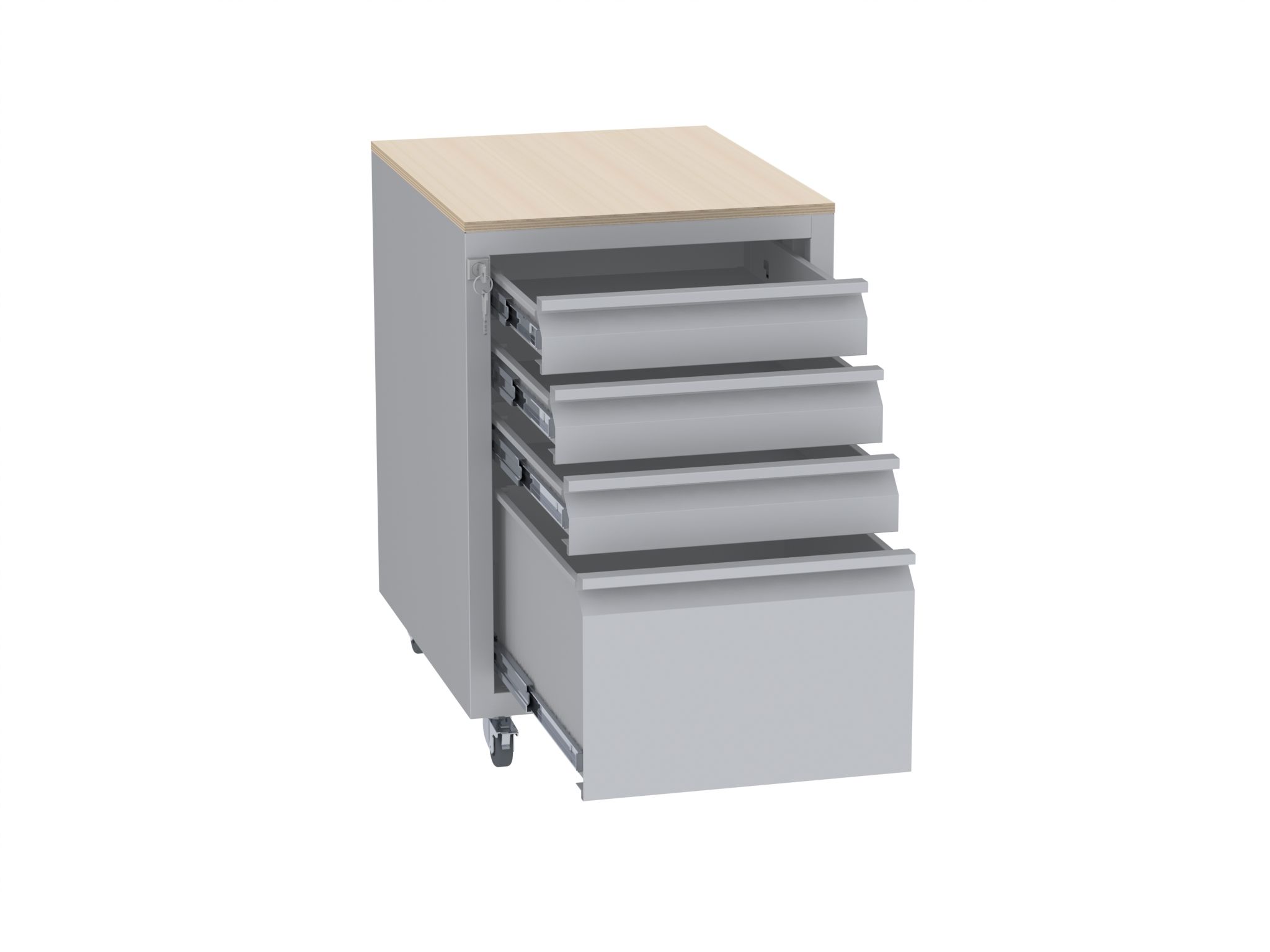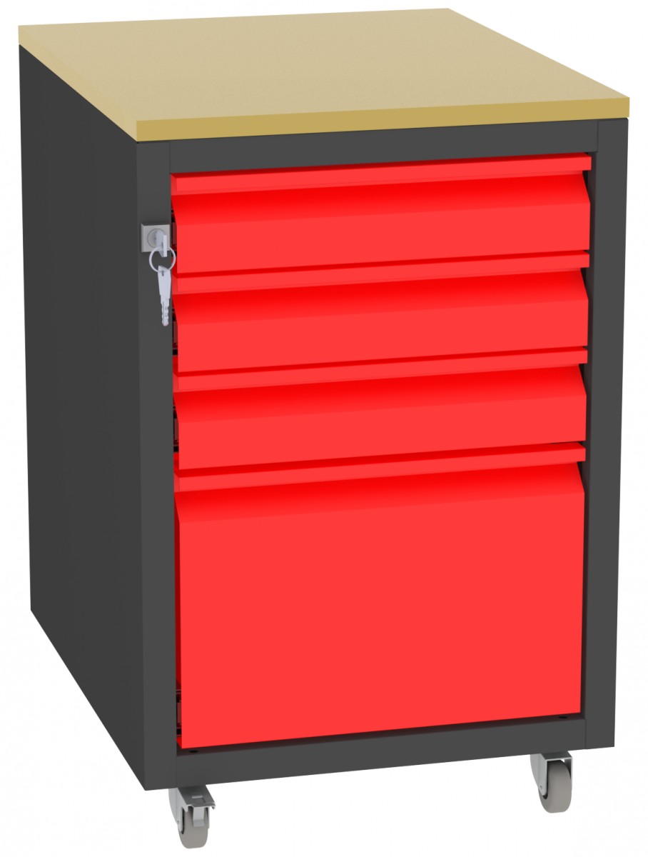 Produktinformationen "Werkstatttisch, Rollcontainer - 1 + 3 Schublade - 675x450x555 mm (HxBxT) - Typ G"