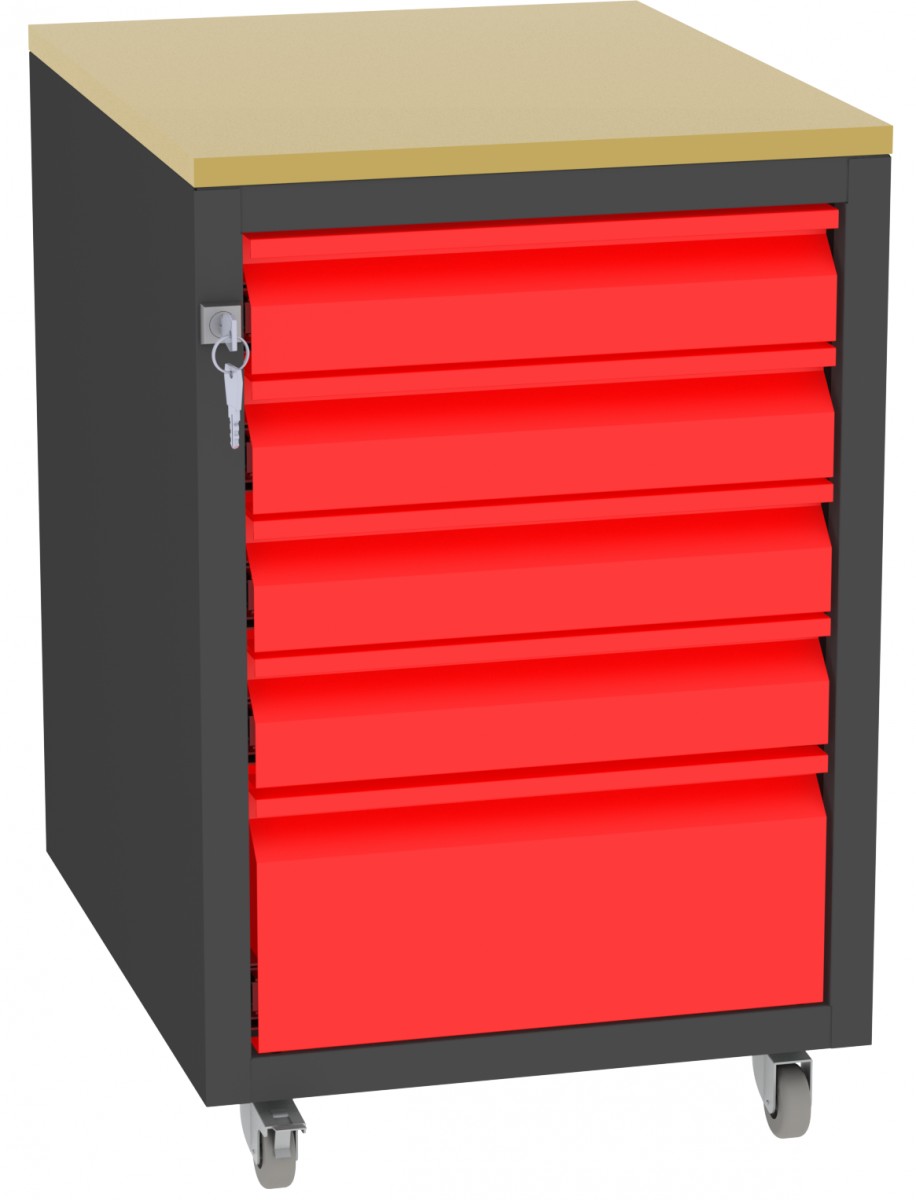 Produktinformationen "Werkstatttisch, Rollcontainer - 1 + 4 Schublade - 675x450x555 mm (HxBxT) - Typ H"