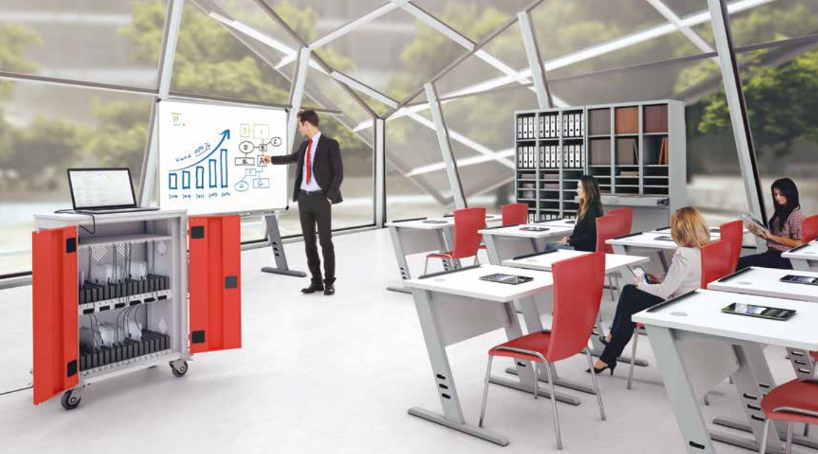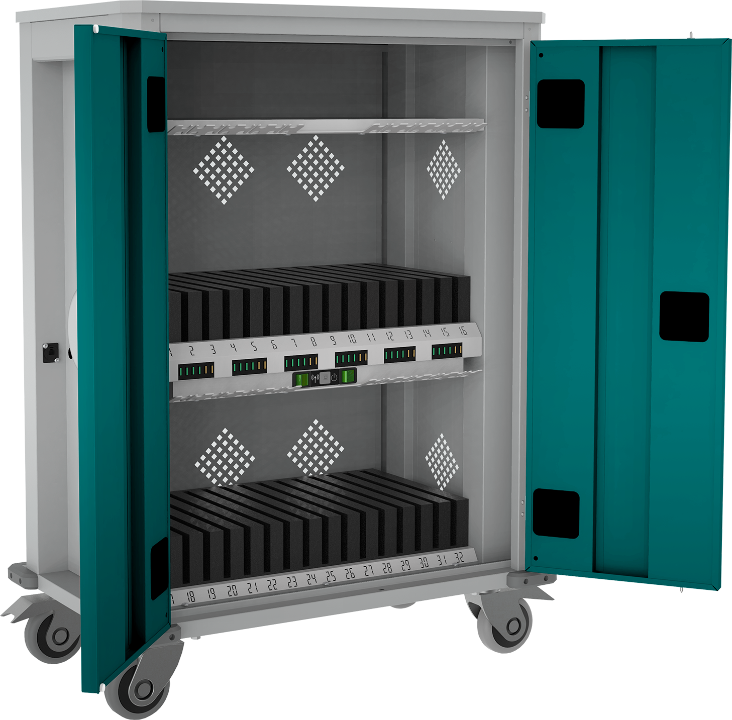 Der Tablet-Wagen mit Batterieladefunktion dient zum Aufbewahren und Transportieren von 32 Tablets + 1 Laptop. Es ist ideal für Schulen, Hochschulen, Bibliotheken und Konferenzräume - überall dort, wo sichere Speicherung und gleichzeitiges Aufladen von Tablets erforderlich sind.