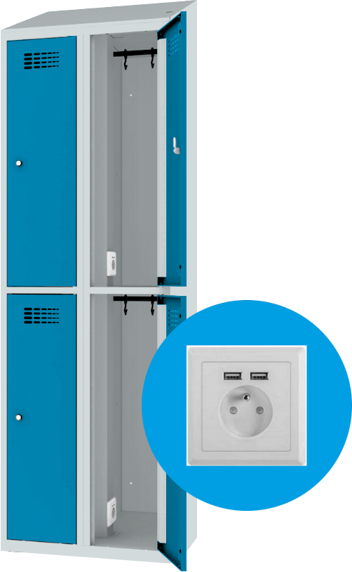 Garderobenschrank - 1 Abteil - 2 Fächer - mit Steckdosen + USB A+C