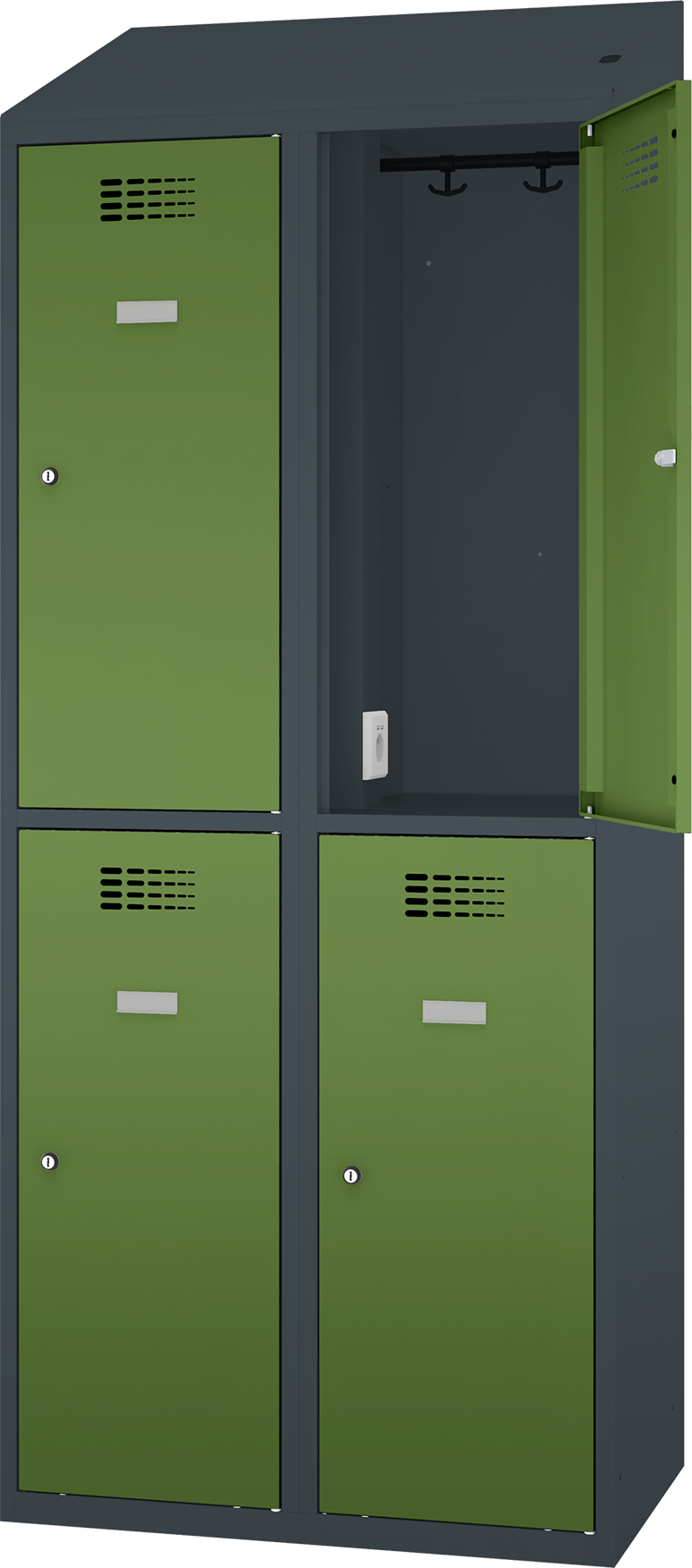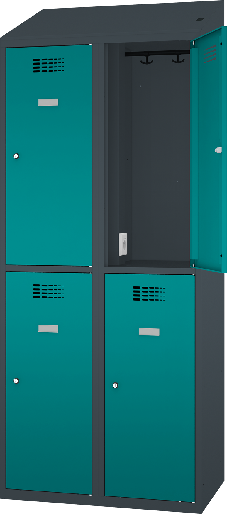Garderobenschrank - 2 Abteile - 4 Fächer - mit Steckdosen + USB A+C
